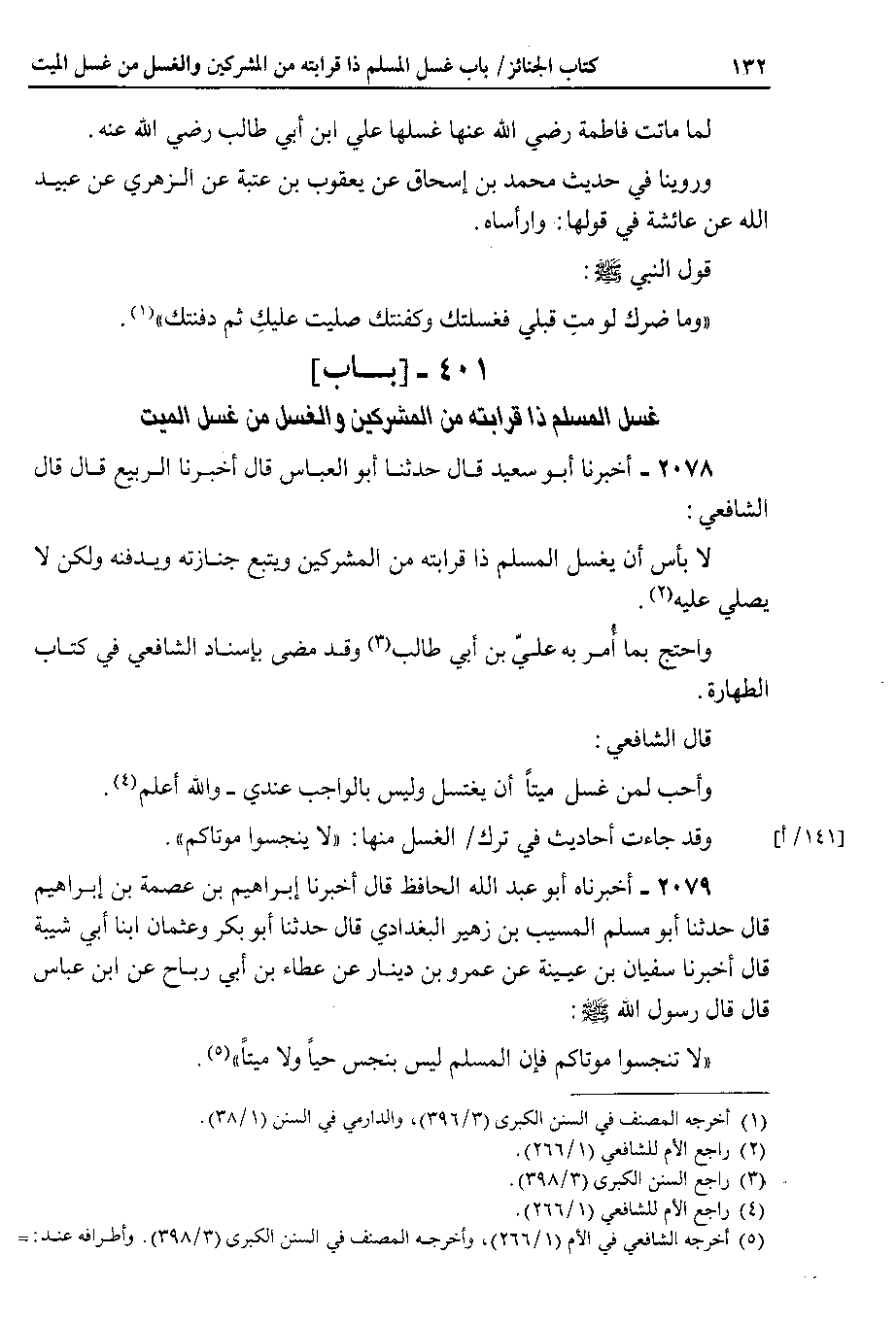 2078 - أخبرنا أبو سعيد قال حدثنا أبو العباس قال أخبرنا الربيع قال قال الشافعي لا بأس أن يغسل المسلم ذا قرابته من المشركين ويتبع جنازته ويدفنه ولكن لا يصلي عليه.