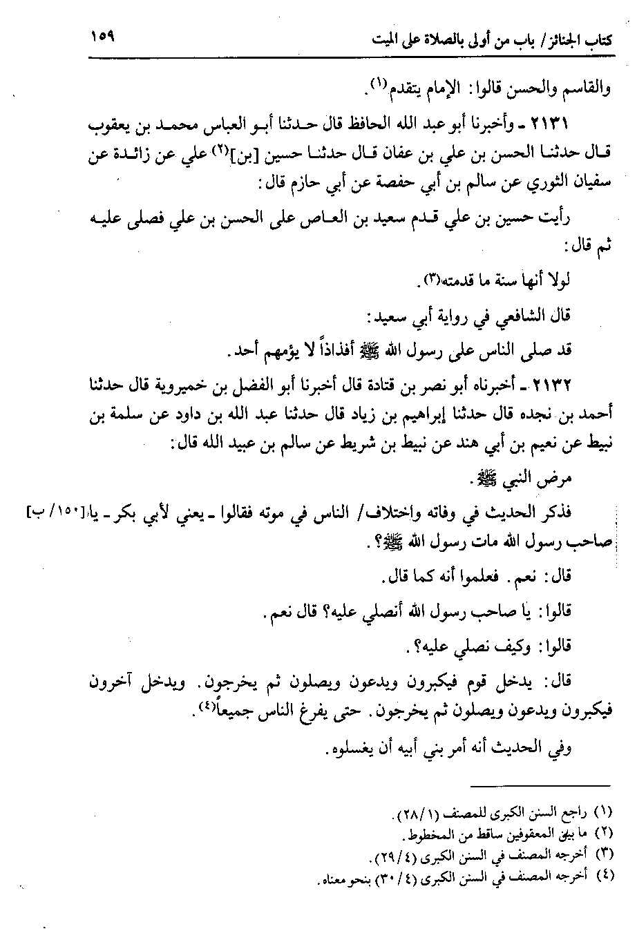2131 - وأخبرنا أبو عبد الله الحافظ قال حدثنا أبو العباس محمد بن يعقوب قال حدثنا الحسن بن علي بن عفان قال حدثنا حسين بن علي عن زائدة عن سفيان الثوري عن سالم بن أبي حفصة عن أبي حازم قال رأيت حسين بن علي قدم سعيد بن العاص على الحسن بن علي فصلى عليه ثم قال لولا أنها سنة ما قدمته.
