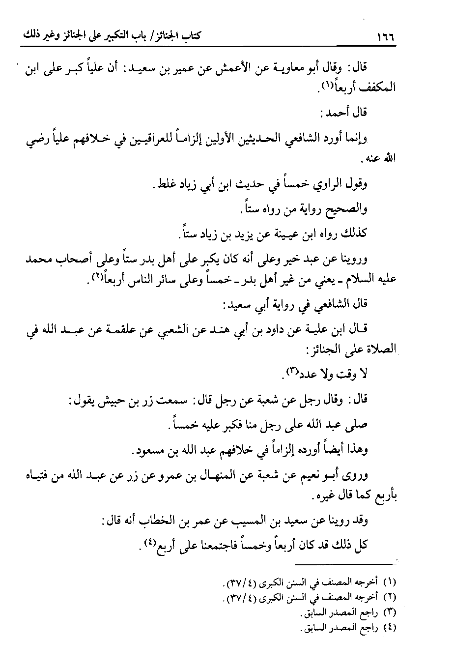 قال : وقال أبو معاوية عن الأعمش عن عمير بن سعيد : أن علياً كبر على ابن المكفف أربعاً.