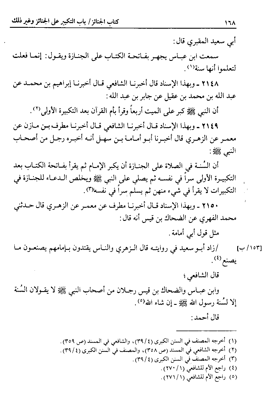 2148 - وبهذا الإسناد قال أخبرنا الشافعي قال أخبرنا إبراهيم بن محمد عن عَبد الله بن مُحَمد بن عَقِيل عن جابر بن عبد الله أن النبي صلى الله عليه وسلم كبر على الميت أربعاً وقرأ بأم القرآن بعد التكبيرة الأولى.