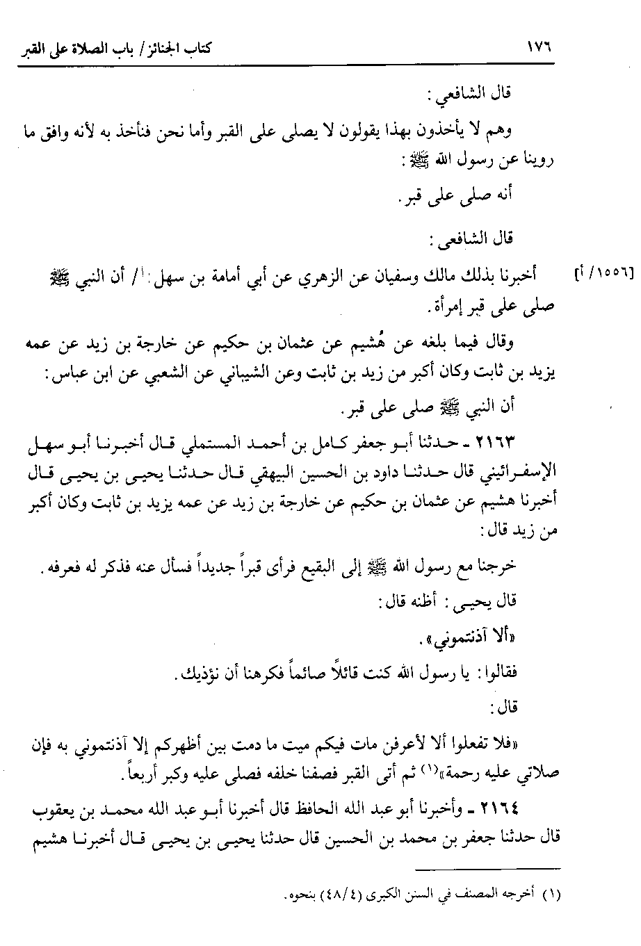 قال الشافعي وهم لا يأخذون بهذا يقولون لا يصلى على القبر وأما نحن فنأخذ به لأنه وافق ما روينا عن رسول الله صلى الله عليه وسلم أنه صلى على قبر.
