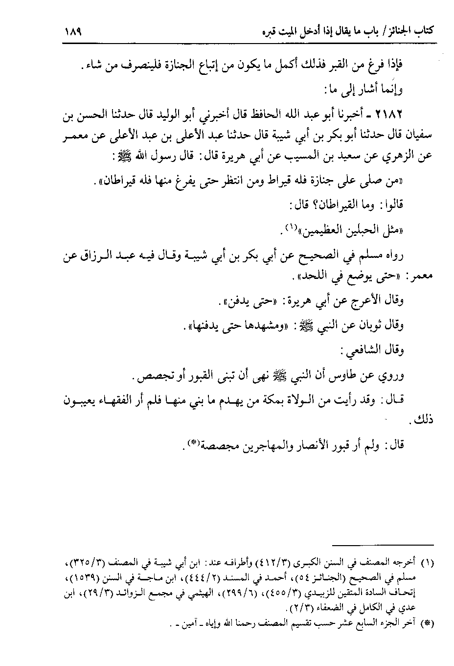وإنما أشار إلى ما 2182 - أخبرنا أبو عبد الله الحافظ قال أخبرني أبو الوليد قال حدثنا الحسن بن سفيان قال حدثنا أبو بكر بن أبي شيبة قال حدثنا عبد الأعلى بن عبد الأعلى عن معمر عن الزهري عن سعيد بن المسيب عن أبي هريرة قال : قال رسول الله صلى الله عليه وسلم من صلى على جنازة فله قيراط ومن انتظر حتى يفرغ منها فله قيراطان.