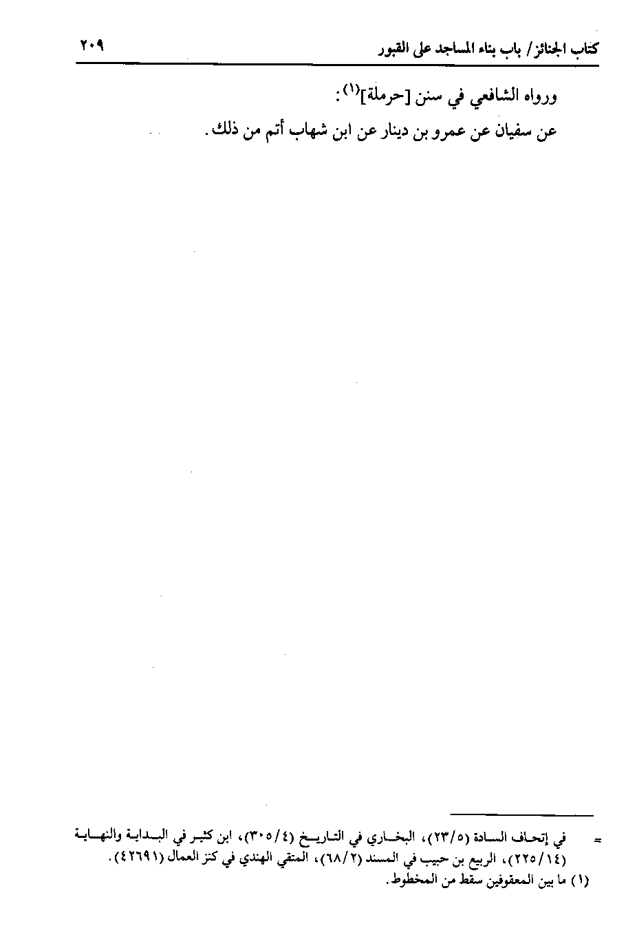 ورواه الشافعي في سنن حرملة عن سفيان عن عمرو بن دينار عن ابن شهاب أتم من ذلك.