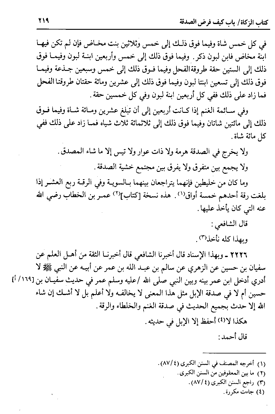 2226 - وبهذا الإسناد قال أخبرنا الشافعي قال أخبرنا الثقة من أهل العلم عن سفيان بن حسين عن الزهري عن سالم بن عبد الله بن عمر عن أبيه عن النبي صلى الله عليه وسلم لا أدري أدخل ابن عمر بينه وبين النبي صلى الله عليه وسلم عمر في حديث سفيان بن حسين أم لا في صدقة الإبل مثل هذا المعنى لا يخالفه ولا أعلم بل لا أشك إن شاء الله إلا حدث بجميع الحديث في صدقة الغنم والخلطاء والرقة.