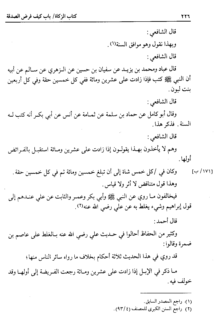 قال الشافعي قال عباد ومحمد بن يزيد عن سفيان بن حسين عن الزهري عن سالم عن أبيه أن النبي صلى الله عليه وسلم كتب فإذا زادت على عشرين ومِئَة ففي كل خمسين حقة وفي كل أربعين بنت لبون.