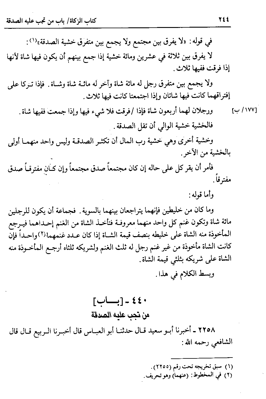 2258 - أخبرنا أبو سعيد قال حدثنا أبو العباس قال أخبرنا الربيع قال قال الشافعي رحمه الله