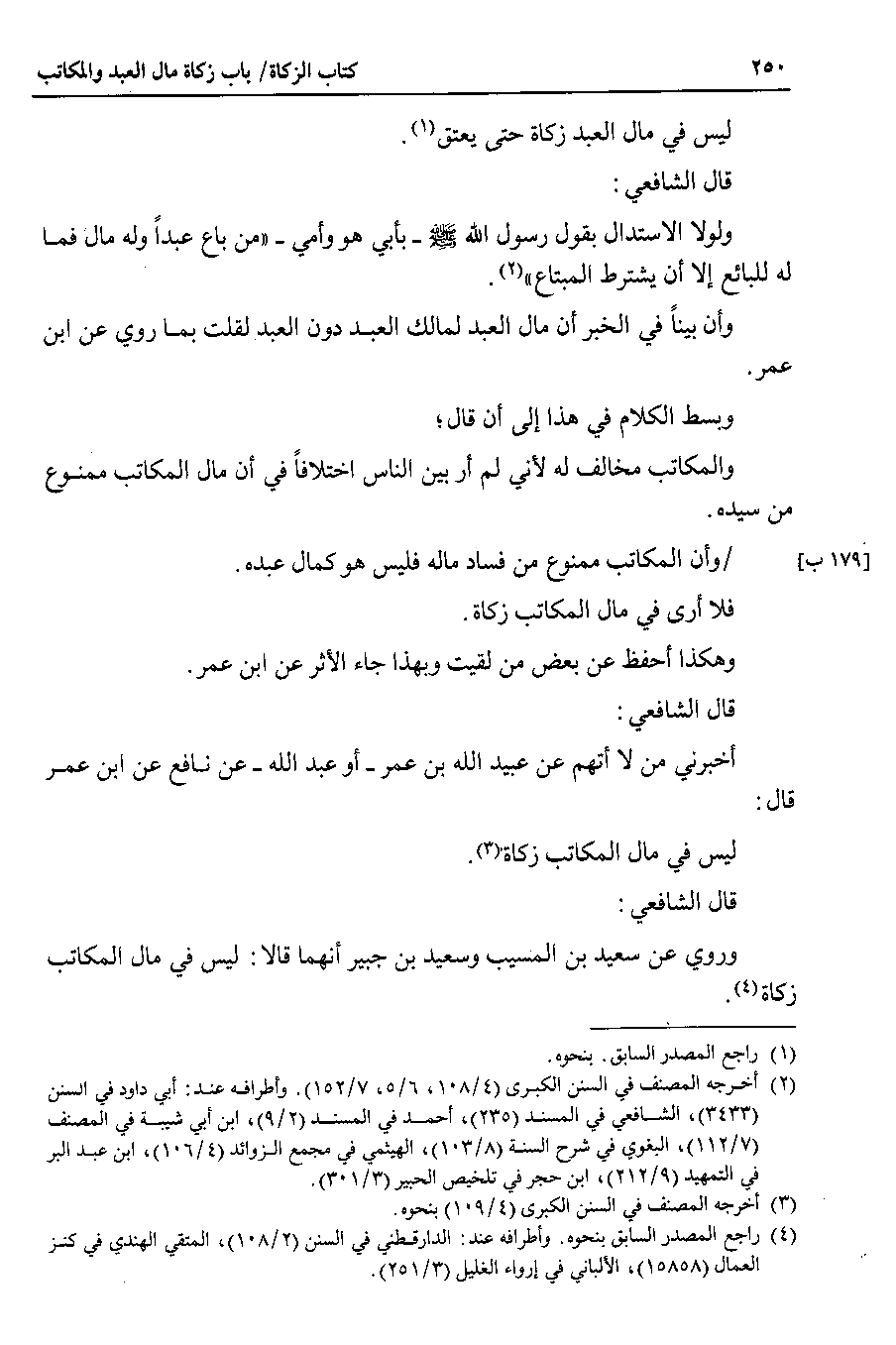 قال الشافعي أخبرني من لا أتهم عن عبيد الله بن عمر _ أو عبد الله _ عن نافع عن ابن عمر قال ليس في مال المكاتب زكاة.