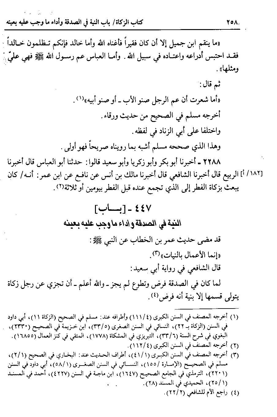 447 - باب ) ( النية في الصدقة وأداء ما وجب عليه بعينه )