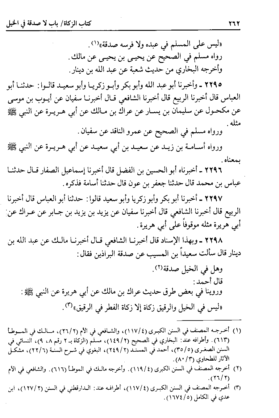 2298 - وبهذا الإسناد قال أخبرنا الشافعي قال أخبرنا مالك عن عبد الله بن دينار قال سألت سعيداً بن المسيب عن صدقة البراذين فقال وهل في الخيل صدقة.