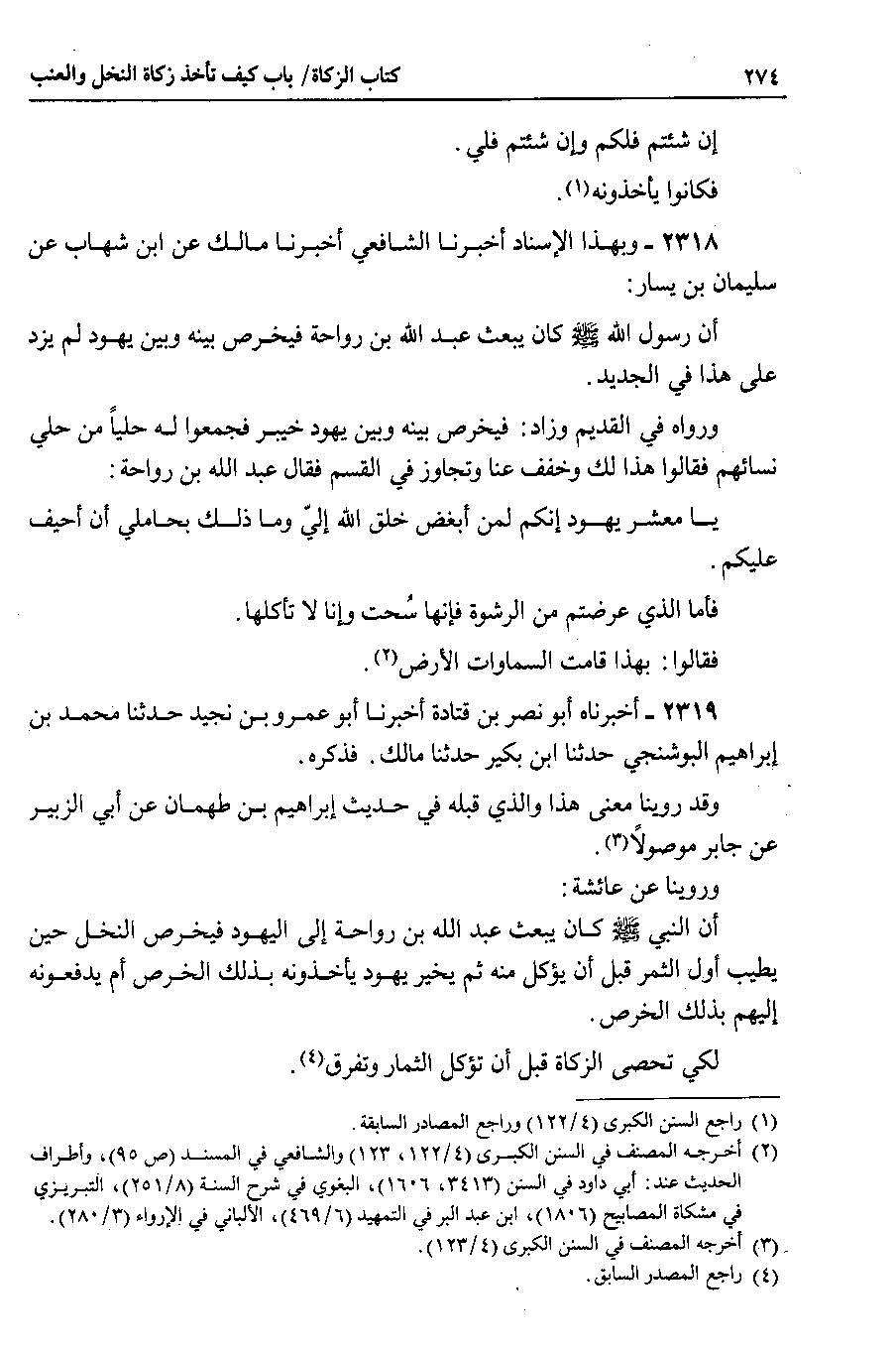 2318 - وبهذا الإسناد أخبرنا الشافعي أخبرنا مالك عن ابن شهاب عن سليمان بن يسار أن رسول الله صلى الله عليه وسلم كان يبعث عبد الله بن رواحة فيخرص بينه وبين يهود لم يزد على هذا في الجديد.