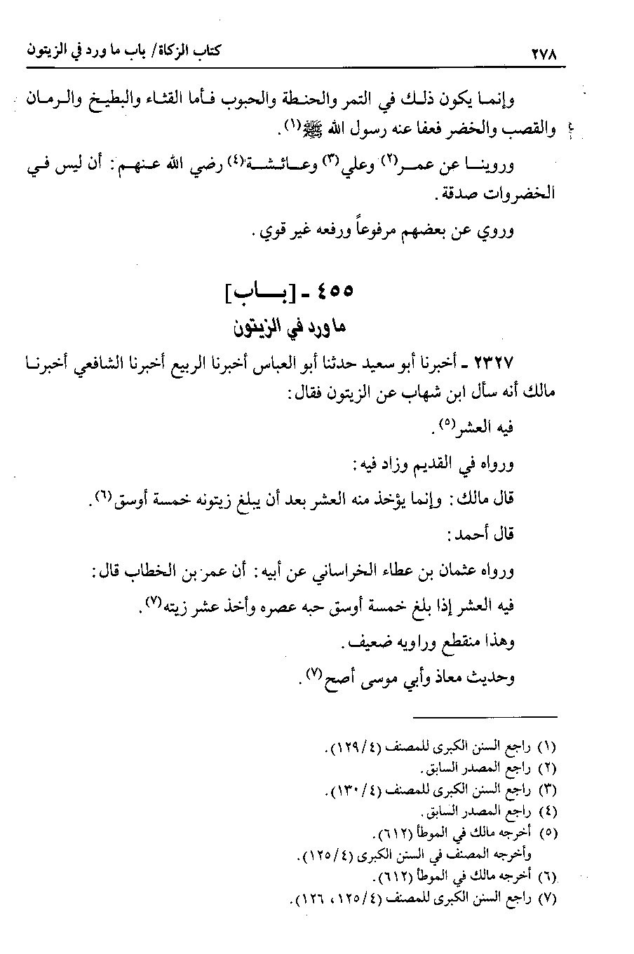 ورواه في القديم وزاد فيه قال مالك : وإنما يؤخذ منه العشر بعد أن يبلغ زيتونه خمسة أوسق.