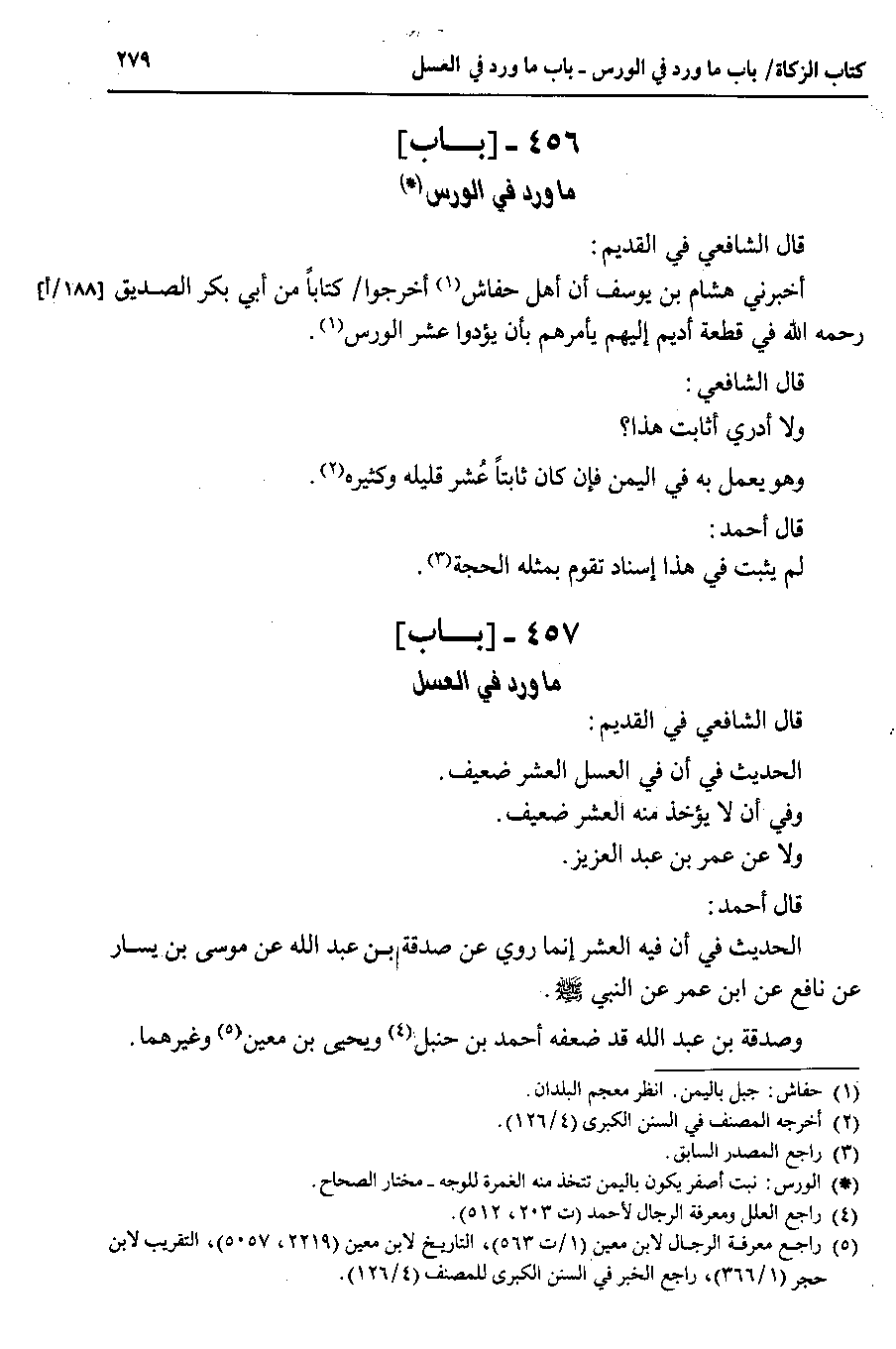 قال الشافعي في القديم الحديث في أن في العسل العشر ضعيف.