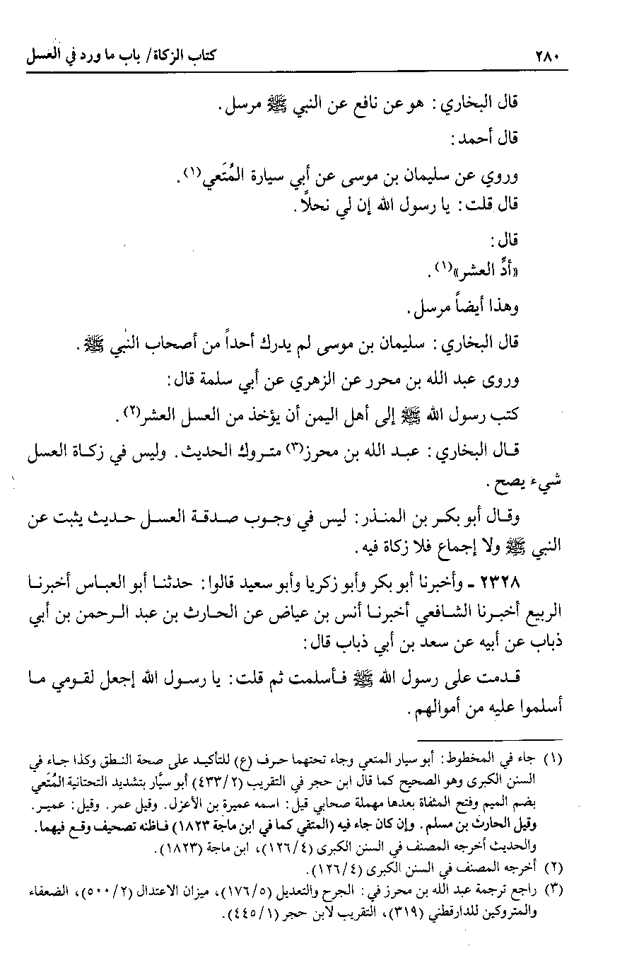 قال البخاري : عبد الله بن محرز متروك الحديث . وليس في زكاة العسل شيء يصح.