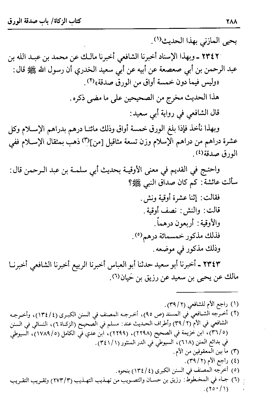 2342 - وبهذا الإسناد أخبرنا الشافعي أخبرنا مالك عن محمد بن عبد الله بن عبد الرحمن بن أبي صعصعة عن أبيه عن أبي سعيد الخدري أن رسول الله صلى الله عليه وسلم قال وليس فيما دون خمسة أواق من الورق صدقة.