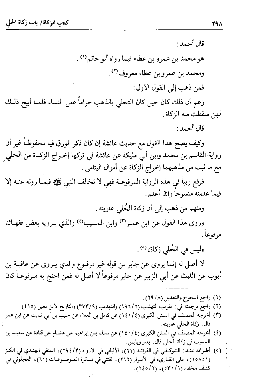 قال أحمد وكيف يصح هذا القول مع حديث عائشة إن كان ذكر الورق فيه محفوظاً غير أن رواية القاسم بن محمد وابن أبي مليكة عن عائشة في تركها إخراج الزكاة من الحلي مع ما ثبت من مذهبهما إخراج الزكاة عن أموال اليتامى.