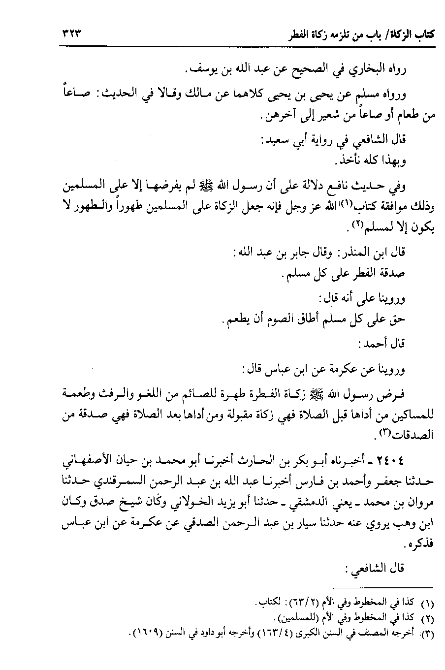 وفي حديث نافع دلالة على أن رسول الله صلى الله عليه وسلم لم يفرضها إلا على المسلمين وذلك موافقة كتاب الله عز وجل فإنه جعل الزكاة على المسلمين طهوراً والطهور لا يكون إلا لمسلم.