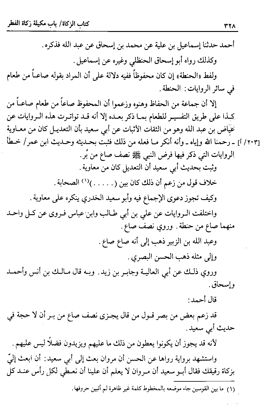 قال أحمد قد زعم بعض من بصر قول من قال يجزى نصف صاع من بر أن لا حجة في حديث أبي سعيد.