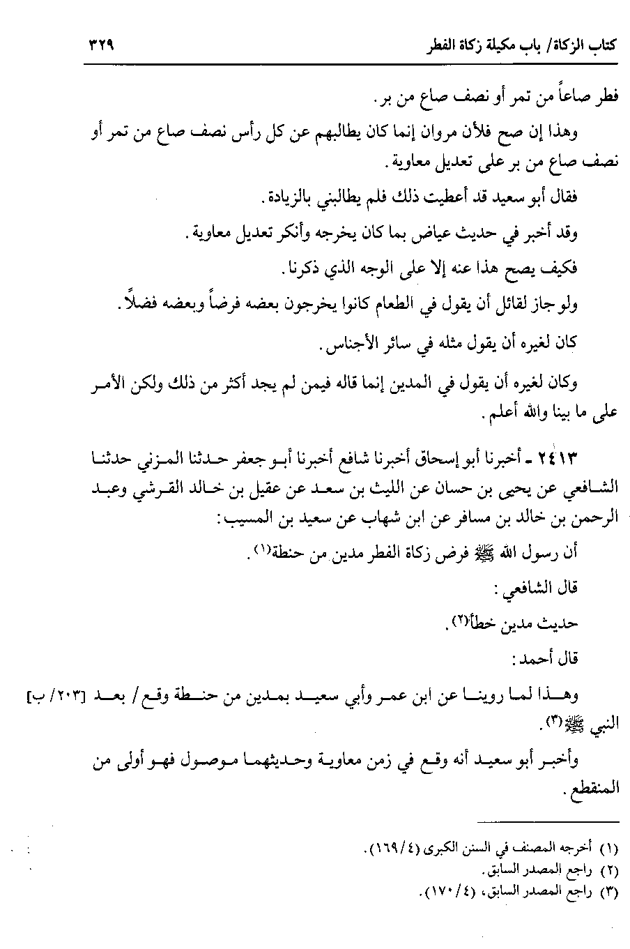 2413 - أخبرنا أبو إسحاق أخبرنا شافع أخبرنا أبو جعفر حدثنا المزني حدثنا الشافعي عن يحيى بن حسان عن الليث بن سعد عن عقيل بن خالد القرشي وعبد الرحمن بن خالد بن مسافر عن ابن شهاب عن سعيد بن المسيب أن رسول الله صلى الله عليه وسلم فرض زكاة الفطر مدين من حنطة.
