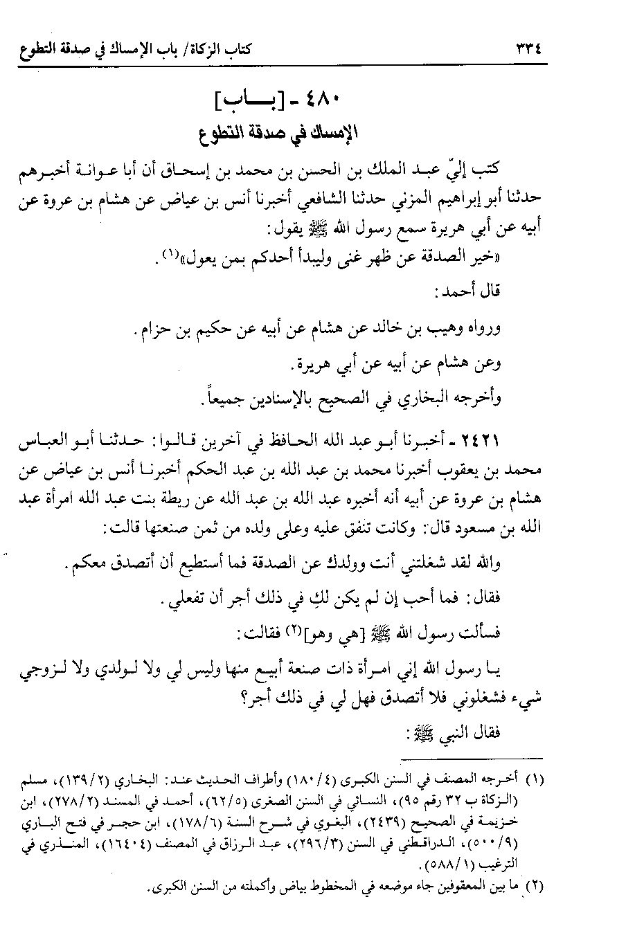 ( 480 - باب ) ( الإمساك في صدقة التطوع )