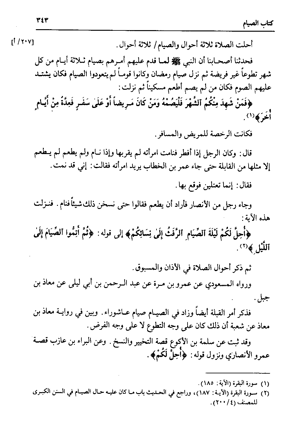 أحلت الصلاة ثلاثة أحوال والصيام ثلاثة أحوال.
