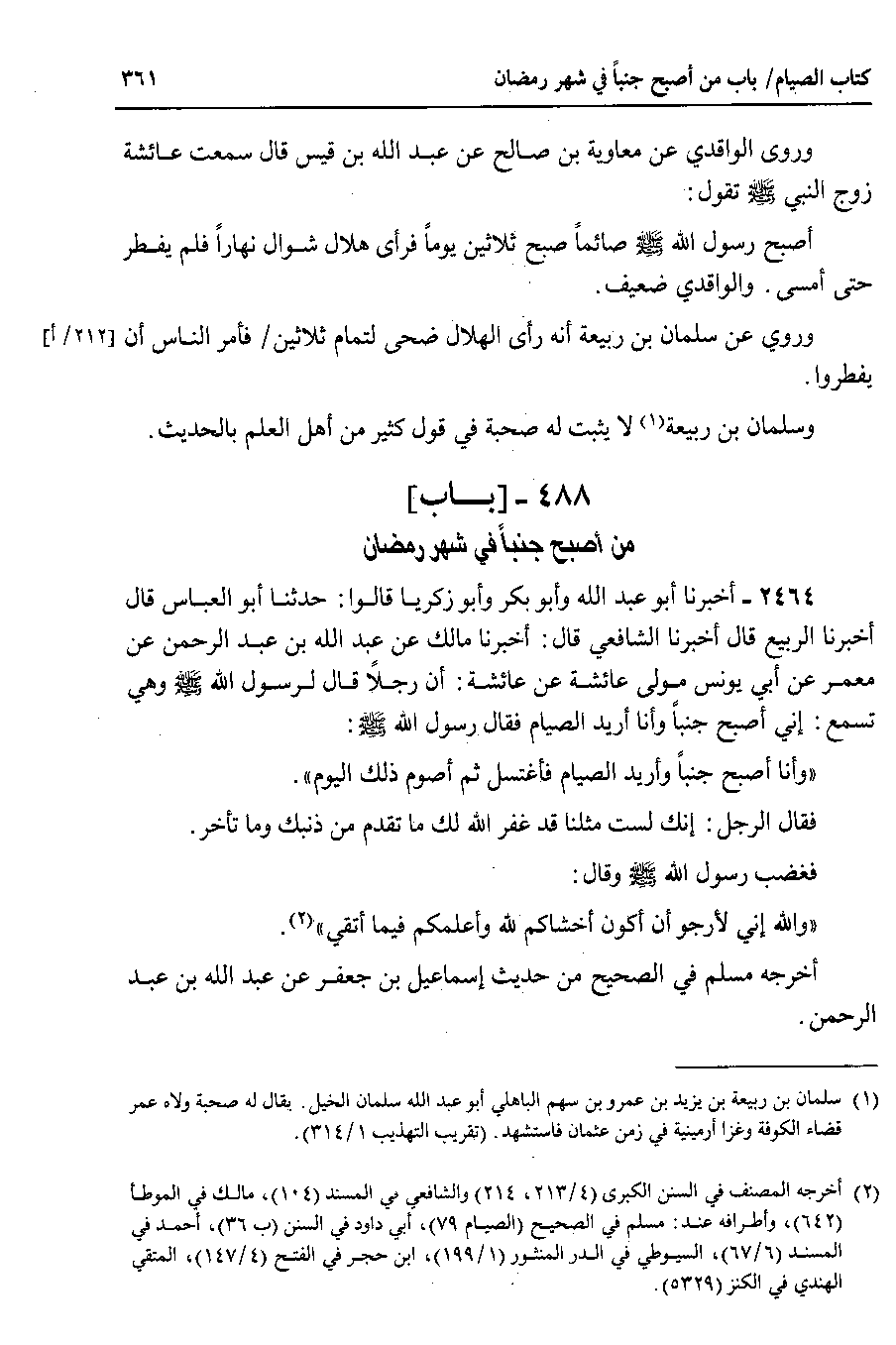 488 - باب ) ( من أصبح جنباً في شهر رمضان