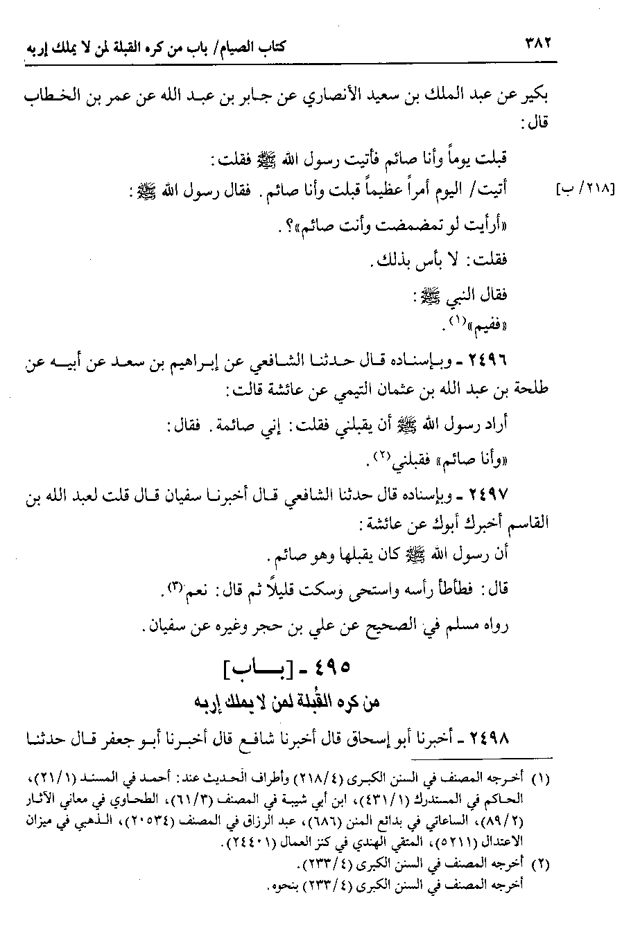 495 - باب ) ( من كره القُبلة لمن لا يملك إربه