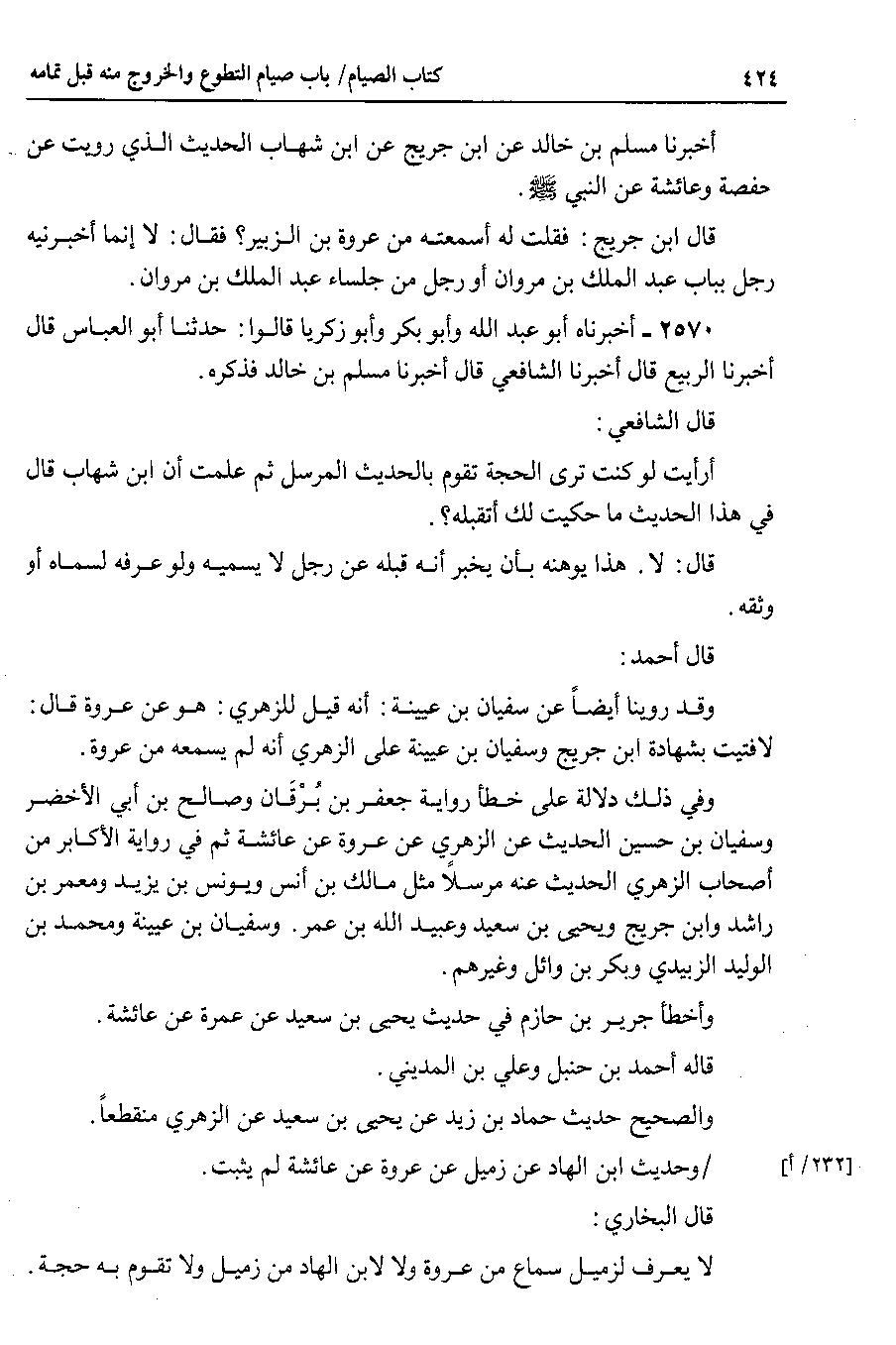 2570 - أخبرناه أبو عبد الله وأبو بكر وأبو زكريا قالوا : حدثنا أبو العباس قال أخبرنا الربيع قال أخبرنا الشافعي قال أخبرنا مسلم بن خالد فذكره.