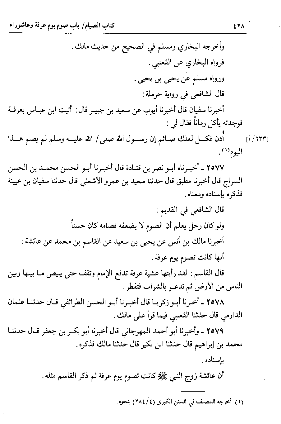 بإسناده أن عائشة زوج النبي صلى الله عليه وسلم كانت تصوم يوم عرفة ثم ذكر القاسم مثله.