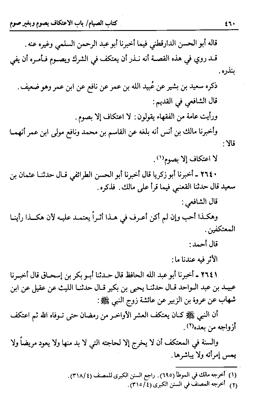 قال الشافعي في القديم ورأيت عامة من الفقهاء يقولون : لا اعتكاف إلا بصوم.