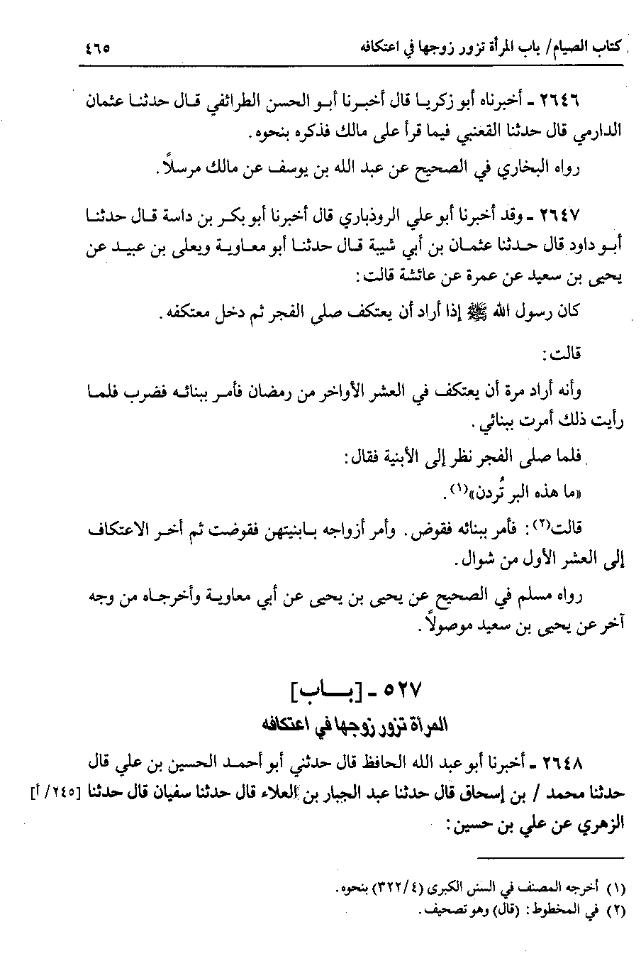 527 - باب ) ( المرأة تزور زوجها في اعتكافه