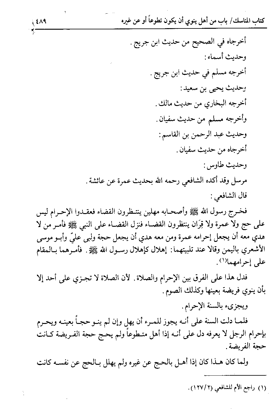 فدل هذا على الفرق بين الإحرام والصلاة . لأن الصلاة لا تجزي على أحد إلا بأن ينوي فريضة بعينها وكذلك الصوم.