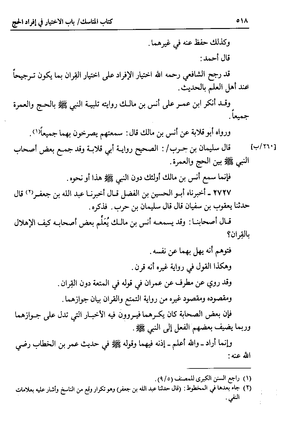 قال أصحابنا : وقد يسمعه أنس بن مالك يعلم بعض أصحابه كيف الإهلال بالقران ؟ فتوهم أنه يهل بهما عن نفسه.