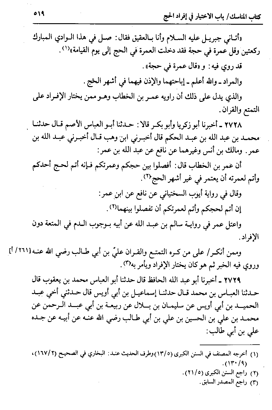 والذي يدل على ذلك أن راويه عمر بن الخطاب وهو ممن يختار الإفراد على التمتع والقران.
