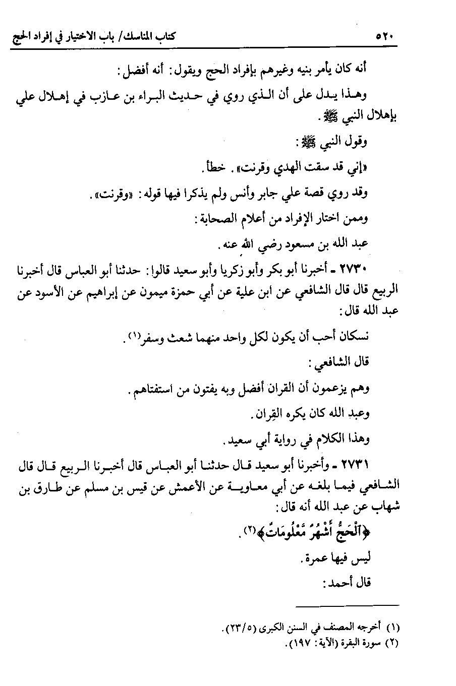 2731 - وأخبرنا أبو سعيد قال حدثنا أبو العباس قال أخبرنا الربيع قال قال الشافعي فيما بلغه عن أبي معاوية عن الأعمش عن قيس بن مسلم عن طارق بن شهاب عن عبد الله أنه قال {الحج أشهر معلومات}.