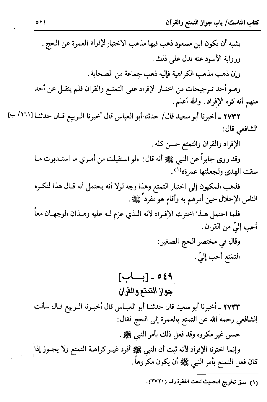 2732 - أخبرنا أبو سعيد قال حدثنا أبو العباس قال أخبرنا الربيع قال حدثنا الشافعي قال الإفراد والقران والتمتع حسن كله.