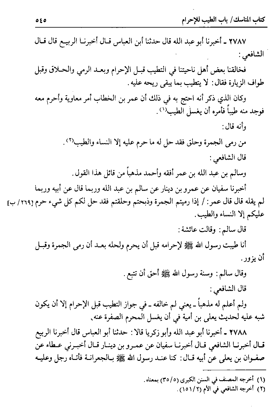 2787 - أخبرنا أبو عبد الله قال حدثنا ابن العباس قال أخبرنا الربيع قال قال الشافعي فخالقنا بعض أهل ناحيتنا في التطيب قبل الإحرام وبعد الرمي والحلاق وقبل طواف الزيارة فقال : لا يتطيب بما يبقى ريحه عليه.