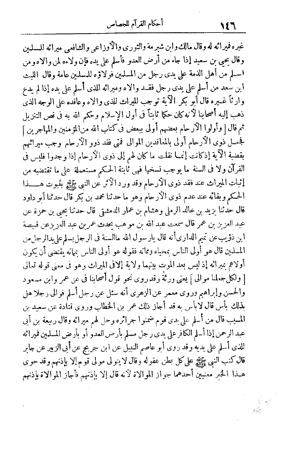 غَيْرُهُ فَمِيرَاثُهُ لَهُ وَقَالَ مَالِكٌ وَابْنُ شُبْرُمَةَ وَالثَّوْرِيُّ وَالْأَوْزَاعِيُّ وَالشَّافِعِيُّ مِيرَاثُهُ لِلْمُسْلِمِينَ وَقَالَ يَحْيَى بْنُ سَعِيدٍ إذَا جَاءَ مِنْ أَرْضِ الْعَدُوِّ فَأَسْلَمَ عَلَى يَدِهِ فَإِنَّ وَلَاءَهُ لِمَنْ وَالَاهُ وَمَنْ أَسْلَمَ مِنْ أَهْلِ الذِّمَّةِ عَلَى يَدَيْ رَجُلٍ مِنْ الْمُسْلِمِينَ فَوَلَاؤُهُ لِلْمُسْلِمِينَ عَامَّةً وَقَالَ الليث ابن سَعْدٍ مَنْ أَسْلَمَ عَلَى يَدَيْ رَجُلٍ فَقَدْ وَالَاهُ وَمِيرَاثُهُ لِلَّذِي أَسْلَمَ عَلَى يَدِهِ إذَا لَمْ يَدَعْ وَارِثًا غَيْرَهُ قَالَ أَبُو بَكْرٍ الْآيَةُ تُوجِبُ الْمِيرَاثَ لِلَّذِي وَالَاهُ وَعَاقَدَهُ عَلَى الْوَجْهِ الَّذِي ذَهَبَ إلَيْهِ أَصْحَابُنَا لِأَنَّهُ كَانَ حُكْمًا ثَابِتًا فِي أَوَّلِ الْإِسْلَامِ وَحَكَمَ اللَّهُ به في نص التنزيل ثم قال وَأُولُوا الْأَرْحامِ بَعْضُهُمْ أَوْلى بِبَعْضٍ فِي كِتابِ اللَّهِ مِنَ الْمُؤْمِنِينَ وَالْمُهاجِرِينَ فجعل ذوى الأرحام أولى بالمعاقدين الْمَوَالِي فَمَتَى فُقِدَ ذَوُو الْأَرْحَامِ وَجَبَ مِيرَاثُهُمْ بِقَضِيَّةِ الْآيَةِ إذْ كَانَتْ إنَّمَا نَقَلَتْ مَا كَانَ لَهُمْ إلَى ذَوِي الْأَرْحَامِ إذَا وُجِدُوا فَلَيْسَ فِي الْقُرْآنِ وَلَا فِي السُّنَّةِ مَا يُوجِبُ نَسْخَهَا فَهِيَ ثَابِتَةُ الْحُكْمِ مُسْتَعْمَلَةٌ عَلَى مَا تَقْتَضِيهِ مِنْ إثْبَاتِ الْمِيرَاثِ عِنْدَ فَقْدِ ذَوِي الْأَرْحَامِ وَقَدْ وَرَدَ الْأَثَرُ عَنْ النَّبِيِّ صَلَّى اللَّهُ عَلَيْهِ وَسَلَّمَ بِثُبُوتِ هَذَا الْحُكْمِ وَبَقَائِهِ عِنْدَ عَدَمِ ذَوِي الْأَرْحَامِ وَهُوَ مَا
