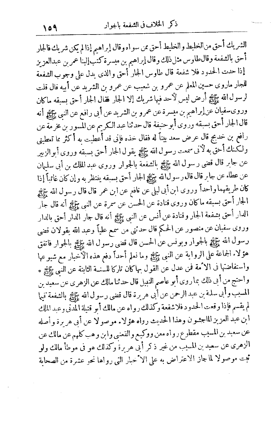 وَرَوَى ابْنِ أَبِي لَيْلَى عَنْ نَافِعٍ عَنْ ابْنِ عُمَرَ قَالَ قَالَ رَسُولُ اللَّهِ صَلَّى اللَّهُ عَلَيْهِ وَسَلَّمَ الْجَارُ أَحَقُّ بسبقه مَا كَانَ