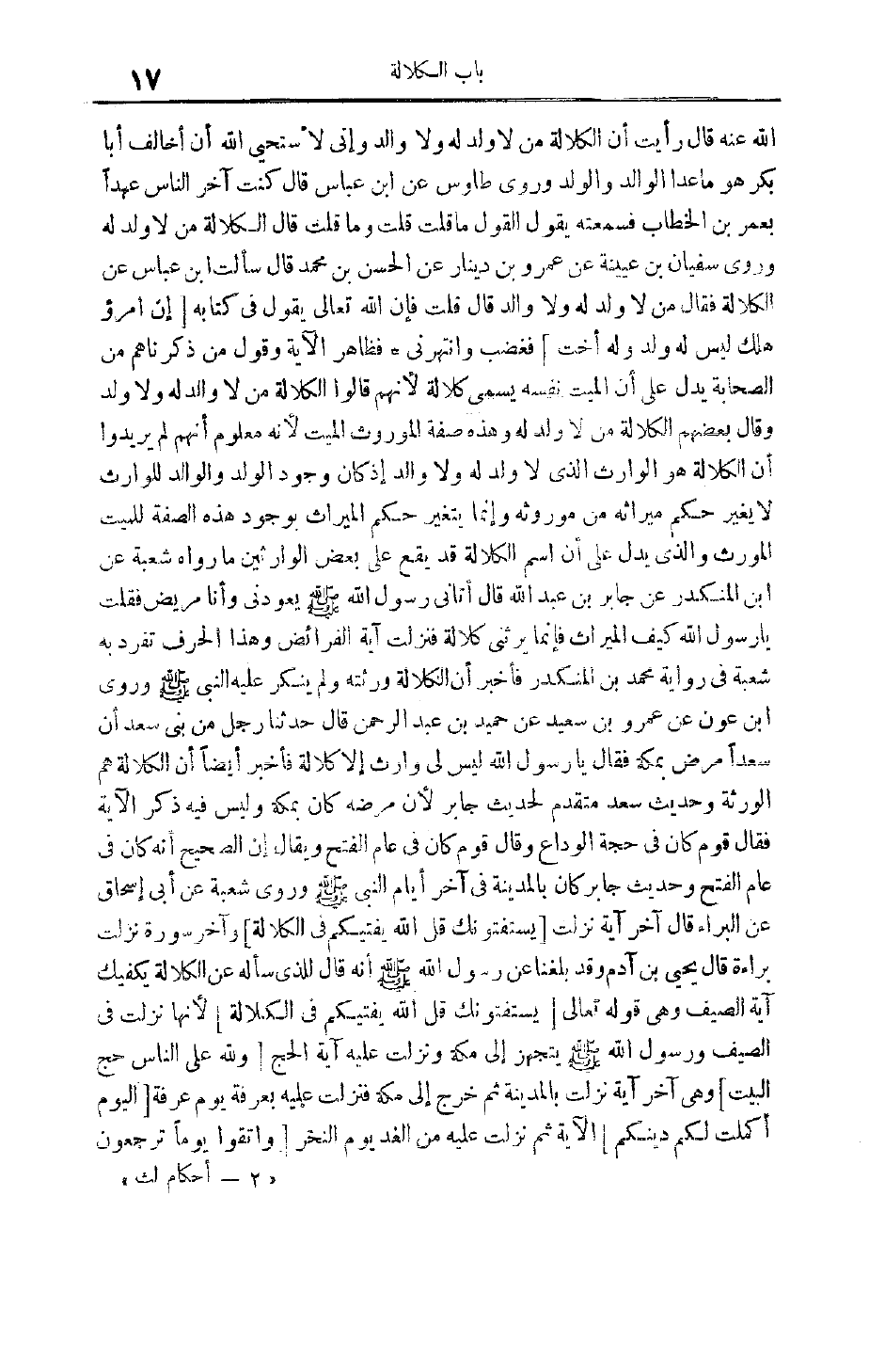فأخبر أَنَّ الْكَلَالَةَ وَرِثَتْهُ وَلَمْ يُنْكِرْ عَلَيْهِ النَّبِيُّ صَلَّى اللَّهُ عَلَيْهِ وَسَلَّمَ