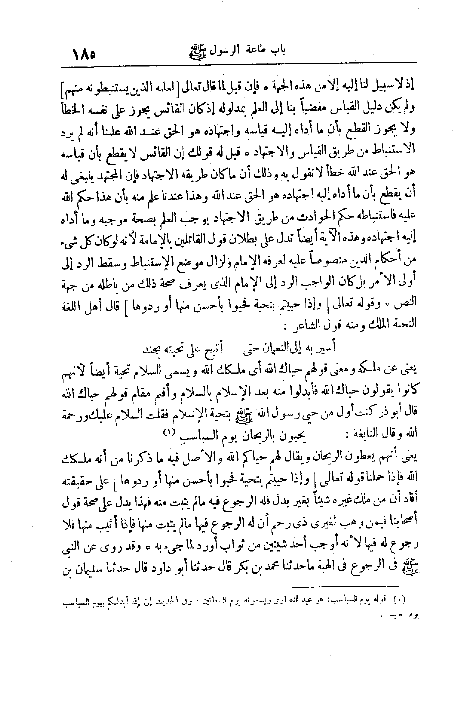 إذْ لَا سَبِيلَ لَنَا إلَيْهِ إلَّا مِنْ هَذِهِ الْجِهَةِ فَإِنْ قِيلَ لِمَا قَالَ تَعَالَى لَعَلِمَهُ الَّذِينَ يَسْتَنْبِطُونَهُ مِنْهُمْ وَلَمْ يَكُنْ دَلِيلُ الْقِيَاسِ مُفْضِيًا بِنَا إلَى الْعِلْمِ بِمَدْلُولِهِ إذْ كَانَ الْقَائِسُ يُجَوِّزُ عَلَى نَفْسِهِ الْخَطَأَ وَلَا يُجَوِّزُ الْقَطْعَ بِأَنَّ مَا أَدَّاهُ إلَيْهِ قِيَاسُهُ وَاجْتِهَادُهُ هُوَ الْحَقُّ عِنْدَ اللَّهِ عَلِمْنَا أَنَّهُ لَمْ يُرِدْ الِاسْتِنْبَاطَ مِنْ طريق القياس والاجتهاد قيل له قولك إنَّ الْقَائِسَ لَا يَقْطَعُ بِأَنَّ قِيَاسَهُ هُوَ الْحَقُّ عِنْدَ اللَّهِ خَطَأٌ لَا نَقُولُ بِهِ وَذَلِكَ أَنَّ مَا كَانَ طَرِيقُهُ الِاجْتِهَادُ فَإِنَّ الْمُجْتَهِدَ يَنْبَغِي لَهُ أَنْ يَقْطَعَ بِأَنَّ مَا أَدَّاهُ إلَيْهِ اجْتِهَادُهُ هُوَ الْحَقُّ عِنْدَ اللَّهِ وَهَذَا عِنْدَنَا عِلْمٌ مِنْهُ بِأَنَّ هَذَا حُكْمُ اللَّهِ عَلَيْهِ فَاسْتِنْبَاطُهُ حُكْمُ الْحَوَادِثِ مِنْ طَرِيقِ الِاجْتِهَادِ يُوجِبُ الْعِلْمَ بِصِحَّةِ مُوجِبِهِ وَمَا أَدَّاهُ إلَيْهِ اجْتِهَادُهُ وَهَذِهِ الْآيَةُ أَيْضًا تَدُلُّ عَلَى بُطْلَانِ قَوْلِ الْقَائِلِينَ بِالْإِمَامَةِ لِأَنَّهُ لَوْ كَانَ كُلُّ شَيْءٍ مِنْ أَحْكَامِ الدِّينِ مَنْصُوصًا عَلَيْهِ لَعَرَفَهُ الْإِمَامُ وَلَزَالَ مَوْضِعُ الِاسْتِنْبَاطِ وَسَقَطَ الرَّدُّ إلَى أُولِي الْأَمْرِ بَلْ كَانَ الْوَاجِبُ الرَّدُّ إلَى الْإِمَامِ الَّذِي يَعْرِفُ صِحَّةَ ذَلِكَ مِنْ باطله من جهة النص وقَوْله تَعَالَى وَإِذا حُيِّيتُمْ بِتَحِيَّةٍ فَحَيُّوا بِأَحْسَنَ مِنْها أَوْ رُدُّوها قَالَ أَهْلُ اللُّغَةِ التَّحِيَّةُ الْمِلْكُ وَمِنْهُ قَوْلُ الشاعر:
