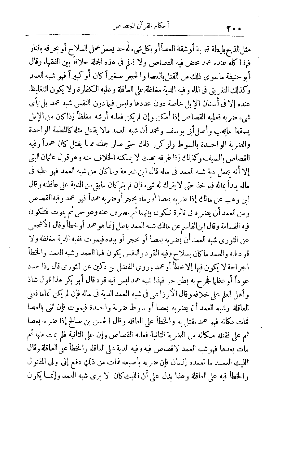 مِثْلُ الذَّبْحِ بِلِيطَةِ قَصَبَةٍ أَوْ شَقَّةِ الْعَصَا أَوْ بِكُلِّ شَيْءٍ لَهُ حَدٌّ يَعْمَلُ عَمَلَ السِّلَاحِ أَوْ بِحَرْقِهِ بِالنَّارِ فَهَذَا كُلُّهُ عِنْدَهُ عَمْدٌ مَحْضٌ فِيهِ الْقِصَاصُ وَلَا نَعْلَمُ فِي هَذِهِ الْجُمْلَةِ خِلَافًا بَيْنَ الْفُقَهَاءِ وَقَالَ أَبُو حَنِيفَةَ مَا سِوَى ذَلِكَ مِنْ الْقَتْلِ بِالْعَصَا وَالْحَجَرِ صَغِيرًا كَانَ أَوْ كَبِيرًا فَهُوَ شِبْهُ الْعَمْدِ وَكَذَلِكَ التَّغْرِيقُ فِي الْمَاءِ وَفِيهِ الدِّيَةُ مُغَلَّظَةٌ عَلَى الْعَاقِلَةِ وَعَلَيْهِ الْكَفَّارَةُ وَلَا يَكُونُ التَّغْلِيظُ عِنْدَهُ إلَّا فِي أَسْنَانِ الْإِبِلِ خَاصَّةً دون عددها وليس فِيمَا دُونَ النَّفْسِ شِبْهُ عَمْدٍ بَلْ بِأَيِّ شَيْءٍ ضَرَبَهُ فَعَلَيْهِ الْقِصَاصُ إذَا أَمْكَنَ وَإِنْ لَمْ يَكُنْ فَعَلَيْهِ أَرْشُهُ مُغَلَّظًا إذَا كَانَ من الإبل يسقط مَا يَجِبُ وَأَصْلُ أَبِي يُوسُفَ وَمُحَمَّدٍ أَنَّ شبه العمد مالا يَقْتُلُ مِثْلُهُ كَاللَّطْمَةِ الْوَاحِدَةِ وَالضَّرْبَةِ الْوَاحِدَةِ بِالسَّوْطِ وَلَوْ كَرَّرَ ذَلِكَ حَتَّى صَارَ جُمْلَتُهُ مِمَّا يَقْتُلُ كَانَ عَمْدًا وَفِيهِ الْقِصَاصُ بِالسَّيْفِ وَكَذَلِكَ إذا غرقه بحيث لا يمكنه الخلاف مِنْهُ وَهُوَ قَوْلُ عُثْمَانَ الْبَتِّيِّ إلَّا أَنَّهُ يجعل دية شبه العمد في ماله قال ابْنُ شُبْرُمَةَ وَمَا كَانَ مِنْ شِبْهِ الْعَمْدِ فهو عليه في ماله يبدأ بماله فيوخذ حَتَّى لَا يُتْرَكُ لَهُ شَيْءٌ فَإِنْ لَمْ يَتِمَّ كَانَ مَا بَقِيَ مِنْ الدِّيَةِ عَلَى عَاقِلَتِهِ وَقَالَ ابْنُ وَهْبٍ عَنْ مَالِكٍ إذَا ضَرَبَهُ بِعَصَا أَوْ رَمَاهُ بِحَجَرٍ أَوْ ضَرَبَهُ عَمْدًا فَهُوَ عَمْدٌ وَفِيهِ الْقِصَاصُ وَمِنْ الْعَمْدِ أَنْ يَضْرِبَهُ فِي نَائِرَةٍ تَكُونُ بَيْنَهُمَا ثُمَّ يَنْصَرِفُ عَنْهُ وَهُوَ حَيٌّ ثُمَّ يَمُوتُ فَتَكُونُ فِيهِ الْقَسَامَةُ وَقَالَ ابْنُ الْقَاسِمِ عَنْ مَالِكٍ شِبْهُ الْعَمْدِ بَاطِلٌ إنَّمَا هُوَ عَمْدٌ أَوْ خَطَأٌ وَقَالَ الْأَشْجَعِيُّ عَنْ الثَّوْرِيِّ شِبْهُ الْعَمْدِ أَنْ يَضْرِبَهُ بِعَصًا أَوْ بِحَجَرٍ أَوْ بِيَدِهِ فَيَمُوتَ فَفِيهِ الدِّيَةُ مُغَلَّظَةٌ وَلَا قَوَدَ فِيهِ وَالْعَمْدُ مَا كَانَ بِسِلَاحٍ وَفِيهِ الْقَوَدُ وَالنَّفْسُ يكون فيها العمد وشبه العمد والخطأ الجراحة لَا يَكُونُ فِيهَا إلَّا خَطَأٌ أَوْ عَمْدٌ وَرَوَى الْفَضْلُ بْنُ دُكَيْنٍ عَنْ الثَّوْرِيِّ قَالَ إذَا حَدَّدَ عُودًا أَوْ عَظْمًا فَجَرَحَ بِهِ بَطْنَ حَرٍّ فَهَذَا شِبْهُ عَمْدٍ لَيْسَ فِيهِ قَوَدٌ قَالَ أَبُو بَكْرٍ هَذَا قَوْلٌ شَاذٌّ وأهل العلم على خلافه وقال الأوزاعى في شِبْهِ الْعَمْدِ الدِّيَةُ فِي مَالِهِ فَإِنْ لَمْ يَكُنْ تَمَامًا فَعَلَى الْعَاقِلَةِ وَشِبْهُ الْعَمْدِ أَنْ يَضْرِبَهُ بِعَصًا أَوْ سَوْطٍ ضَرْبَةً وَاحِدَةً فَيَمُوتَ فَإِنْ ثَنَّى بِالْعَصَا فَمَاتَ مَكَانَهُ فَهُوَ عَمْدٌ يُقْتَلُ بِهِ وَالْخَطَأُ عَلَى الْعَاقِلَةِ وَقَالَ الْحَسَنُ بن صالح إذا ضربه بعصا ثم على فَقَتَلَهُ مَكَانَهُ مِنْ الضَّرْبَةِ الثَّانِيَةِ فَعَلَيْهِ الْقِصَاصُ وإن على الثَّانِيَةَ فَلَمْ يَمُتْ مِنْهَا ثُمَّ مَاتَ بَعْدَهَا فَهُوَ شِبْهُ الْعَمْدِ لَا قِصَاصَ فِيهِ وَفِيهِ الدِّيَةُ عَلَى الْعَاقِلَةِ وَالْخَطَأُ عَلَى الْعَاقِلَةِ وَقَالَ اللَّيْثُ الْعَمْدُ مَا تَعَمَّدَهُ إنْسَانٌ فَإِنْ ضَرَبَهُ بِأُصْبُعِهِ فَمَاتَ مِنْ ذَلِكَ دُفِعَ إلَى وَلِيِّ الْمَقْتُولِ وَالْخَطَأُ فِيهِ عَلَى الْعَاقِلَةِ وَهَذَا يَدُلُّ عَلَى أَنَّ اللَّيْثَ كَانَ لَا يَرَى شِبْهَ الْعَمْدِ وَإِنَّمَا يَكُونُ
