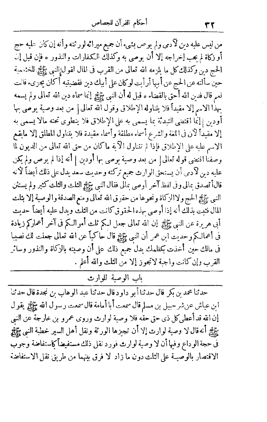 خُطْبَةَ النَّبِيِّ صَلَّى اللَّهُ عَلَيْهِ وَسَلَّمَ فِي حَجَّةِ الْوَدَاعِ وَفِيهَا أَنْ لَا وَصِيَّةَ لِوَارِثٍ