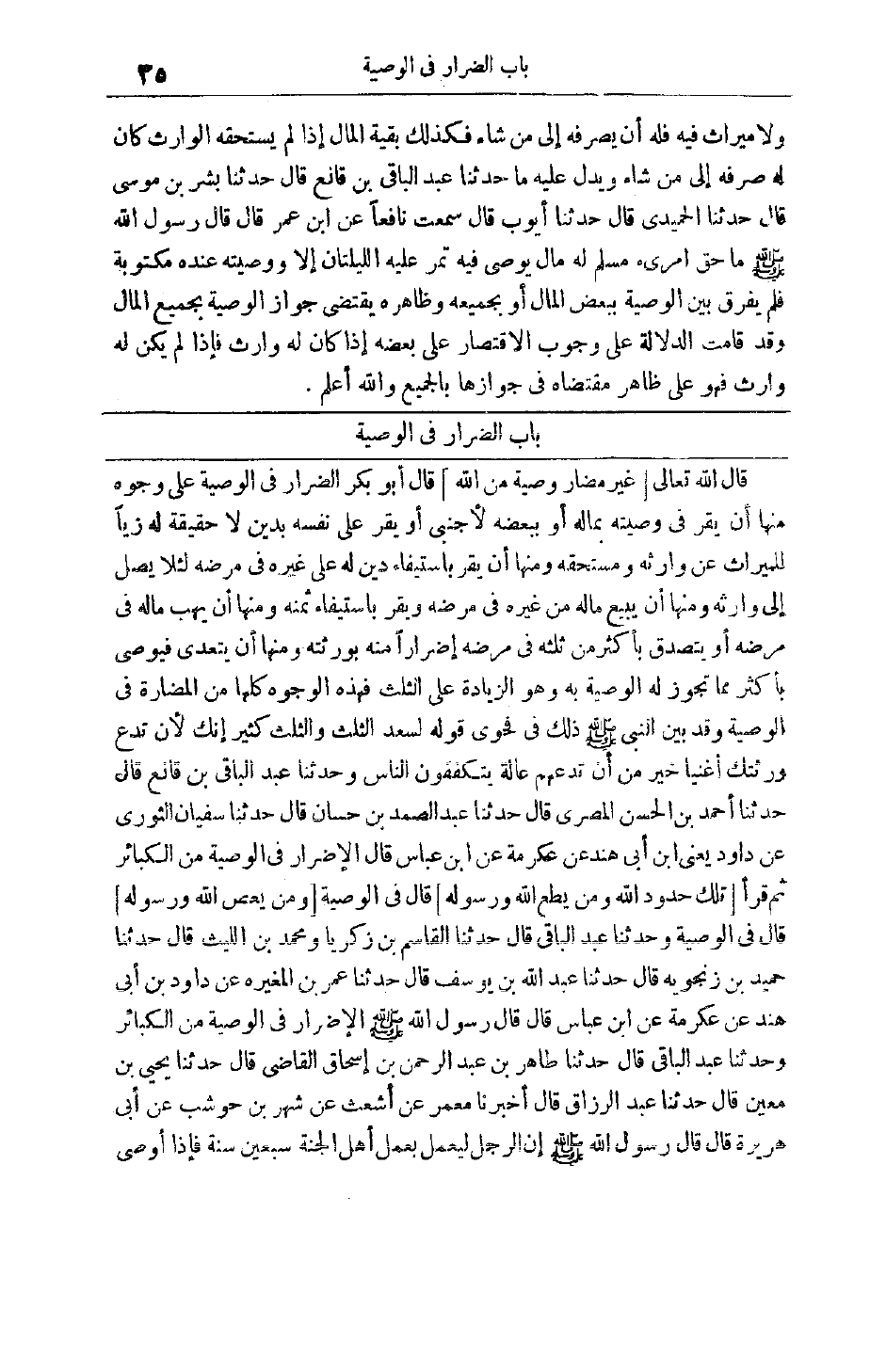 بَابُ الضِّرَارِ فِي الْوَصِيَّةِ