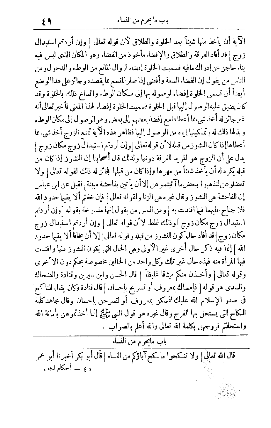 قَالَ اللَّهُ تَعَالَى وَلا تَنْكِحُوا مَا نَكَحَ آباؤُكُمْ مِنَ النِّساءِ قَالَ أَبُو بَكْرٍ أَخْبَرَنَا أَبُو عُمَرَ «4- أحكام لث»