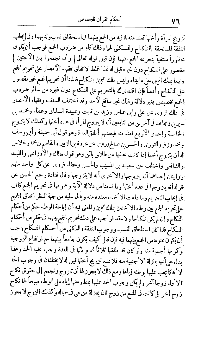 فَرُوِيَ عَنْ عَلِيٍّ وَابْنِ عَبَّاسِ وَزَيْدِ بْنِ ثَابِتٍ وَعَبِيدَةَ السَّلْمَانِيِّ وَعَطَاءٍ وَمُحَمَّدِ بْنِ سِيرِينَ وَمُجَاهِدٍ فِي آخَرِينَ مِنْ التَّابِعِينَ أَنَّهُ لَا يَتَزَوَّجُ الْمَرْأَةَ فِي عِدَّةِ أُخْتِهَا وَكَذَلِكَ لَا يَتَزَوَّجُ الْخَامِسَةَ