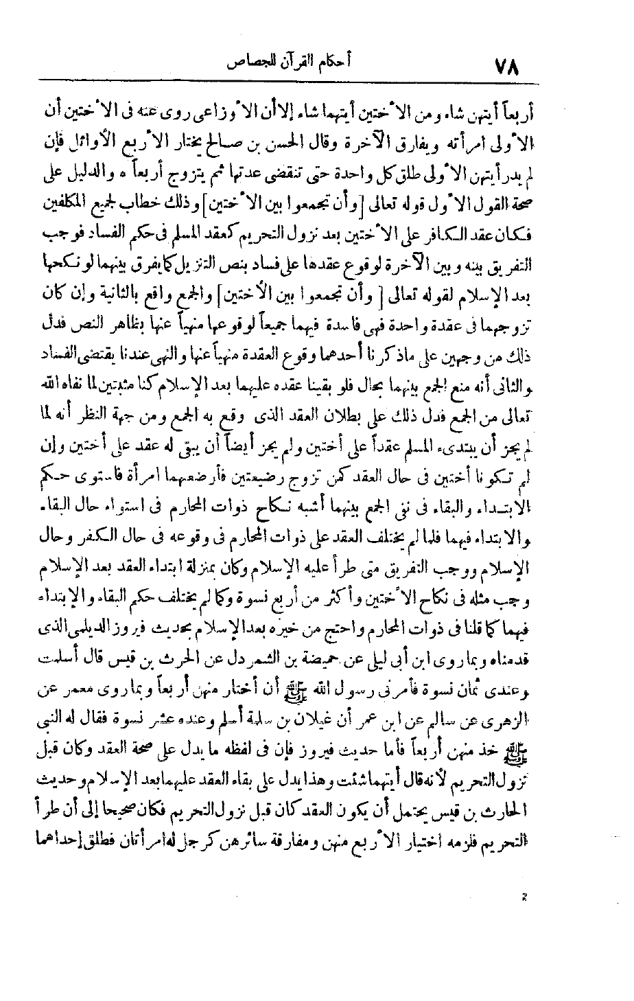 رَوَى ابْنُ أَبِي لَيْلَى عَنْ حميضة بن الشمر دل عن الحرث بْنِ قَيْسٍ قَالَ أَسْلَمْت وَعِنْدِي ثَمَانُ نِسْوَةٍ فَأَمَرَنِي رَسُولُ اللَّهِ صَلَّى اللَّهُ عَلَيْهِ وَسَلَّمَ أَنْ أَخْتَارَ مِنْهُنَّ أَرْبَعًا