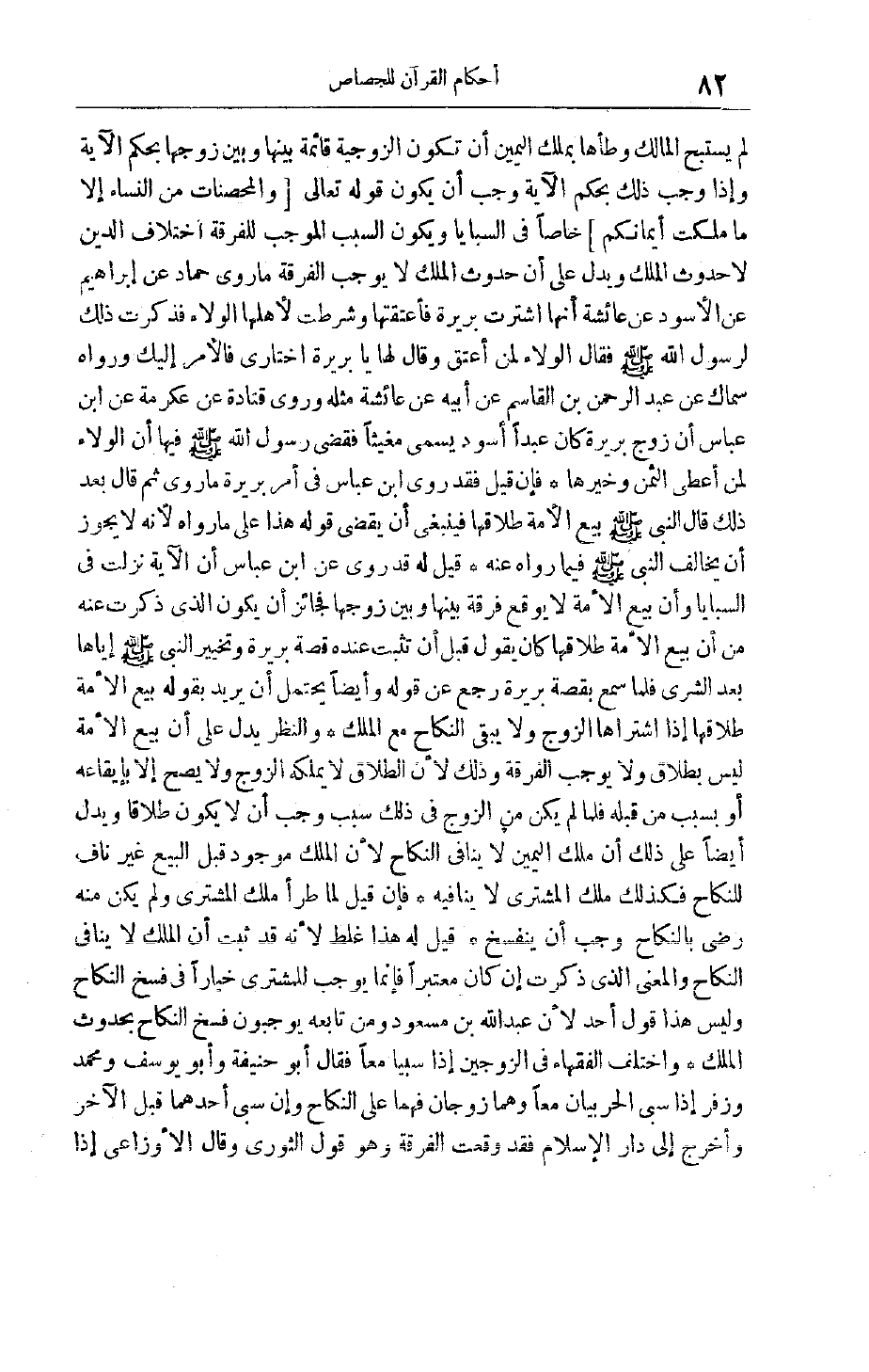 لَمْ يَسْتَبِحْ الْمَالِكُ وَطْأَهَا بِمِلْكِ الْيَمِينِ أَنْ تَكُونَ الزَّوْجِيَّةُ قَائِمَةً بَيْنَهَا وَبَيْنَ زَوْجِهَا بِحُكْمِ الْآيَةِ وَإِذَا وَجَبَ ذَلِكَ بِحُكْمِ الْآيَةِ وَجَبَ أَنْ يَكُونَ قَوْله تَعَالَى وَالْمُحْصَناتُ مِنَ النِّساءِ إِلَّا مَا مَلَكَتْ أَيْمانُكُمْ خَاصًّا فِي السَّبَايَا وَيَكُونُ السَّبَبُ الْمُوجِبُ لِلْفُرْقَةِ اختلاف الدين لَا حُدُوثَ الْمِلْكِ وَيَدُلُّ عَلَى أَنَّ حُدُوثَ الْمِلْكِ لَا يُوجِبُ الْفُرْقَةَ مَا