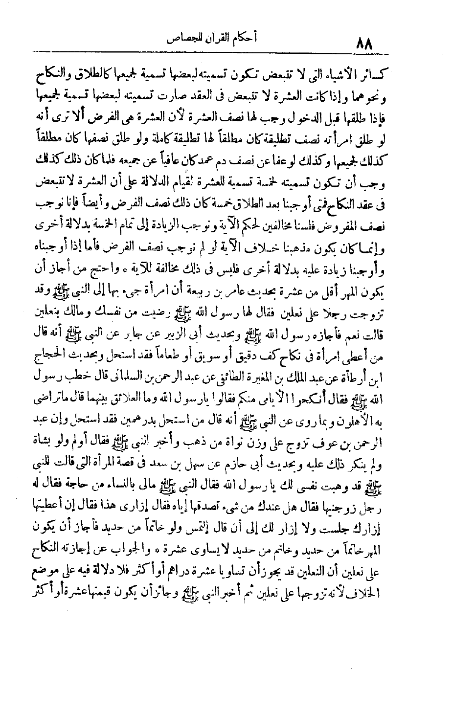 كَسَائِرِ الْأَشْيَاءِ الَّتِي لَا تَتَبَعَّضُ تَكُونُ تَسْمِيَتُهُ لِبَعْضِهَا تَسْمِيَةً لَجَمِيعِهَا كَالطَّلَاقِ وَالنِّكَاحِ وَنَحْوِهِمَا وَإِذَا كَانَتْ الْعَشَرَةُ لَا تَتَبَعَّضُ فِي الْعَقْدِ صَارَتْ تَسْمِيَتُهُ لَبَعْضِهَا تَسْمِيَةً لَجَمِيعِهَا فَإِذَا طَلَّقَهَا قَبْلَ الدُّخُولِ وَجَبَ لَهَا نِصْفُ الْعَشَرَةِ لِأَنَّ الْعَشَرَةَ هِيَ الْفَرْضُ أَلَا تَرَى أَنَّهُ لَوْ طَلَّقَ امْرَأَتَهُ نِصْفَ تَطْلِيقَةٍ كَانَ مُطَلِّقًا لَهَا تَطْلِيقَةً كاملة ولو طلق نصفها كان مطلقا كذلك لِجَمِيعِهَا وَكَذَلِكَ لَوْ عَفَا عَنْ نِصْفِ دَمٍ عَمْدٍ كَانَ عَافِيًا عَنْ جَمِيعِهِ فَلَمَّا كَانَ ذَلِكَ كَذَلِكَ وَجَبَ أَنْ تَكُونَ تَسْمِيَتُهُ لَخَمْسَةٍ تَسْمِيَةً لِلْعَشَرَةِ لِقِيَامِ الدَّلَالَةِ عَلَى أَنَّ الْعَشَرَةَ لَا تَتَبَعَّضُ فِي عَقْدِ النِّكَاحِ فَمَتَى أَوْجَبْنَا بَعْدَ الطَّلَاقِ خَمْسَةً كَانَ ذَلِكَ نِصْفَ الْفَرْضِ وَأَيْضًا فَإِنَّا نُوجِبُ نِصْفَ الْمَفْرُوضِ فَلَسْنَا مُخَالِفِينَ لِحُكْمِ الْآيَةِ وَنُوجِبُ الزِّيَادَةَ إلَى تَمَامِ الْخَمْسَةِ بِدَلَالَةٍ أُخْرَى وَإِنَّمَا كَانَ يَكُونُ مَذْهَبُنَا خِلَافَ الْآيَةِ لَوْ لَمْ نُوجِبْ نِصْفَ الْفَرْضِ فَأَمَّا إذَا أَوْجَبْنَاهُ وَأَوْجَبْنَا زِيَادَةً عَلَيْهِ بِدَلَالَةٍ أُخْرَى فَلَيْسَ فِي ذَلِكَ مُخَالَفَةٌ لِلْآيَةِ وَاحْتَجَّ مَنْ أَجَازَ أَنْ يَكُونَ الْمَهْرُ أَقَلَّ مِنْ عَشَرَةٍ