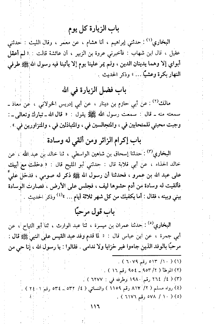 مَالك: عَن أبي حَازِم بن دِينَار، عَن أبي إِدْرِيس الْخَولَانِيّ، عَن معَاذ - سمعته مِنْهُ - قَالَ: سَمِعت رَسُول الله - صَلَّى اللَّهُ عَلَيْهِ وَسَلَّم َ - يَقُول: " قَالَ الله - تبَارك وَتَعَالَى -: وَجَبت محبتي للمتحابين فِي، والمتجالسين فِي، والمتباذلين فِي، والمتزاورين فِي ".