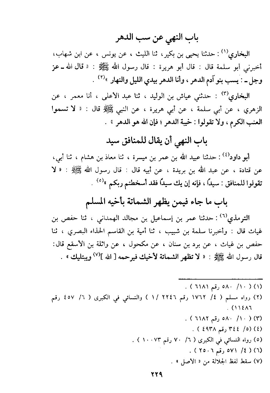 البُخَارِيّ: حَدثنَا يحيى بن بكير، ثَنَا اللَّيْث، عَن يُونُس، عَن ابْن شهَاب، أَخْبرنِي أَبُو سَلمَة قَالَ: قَالَ أَبُو هُرَيْرَة: قَالَ رَسُول الله - صَلَّى اللَّهُ عَلَيْهِ وَسَلَّم َ -: " قَالَ الله - عز وَجل -: يسب بَنو آدم الدَّهْر، وَأَنا الدَّهْر بيَدي اللَّيْل وَالنَّهَار ".